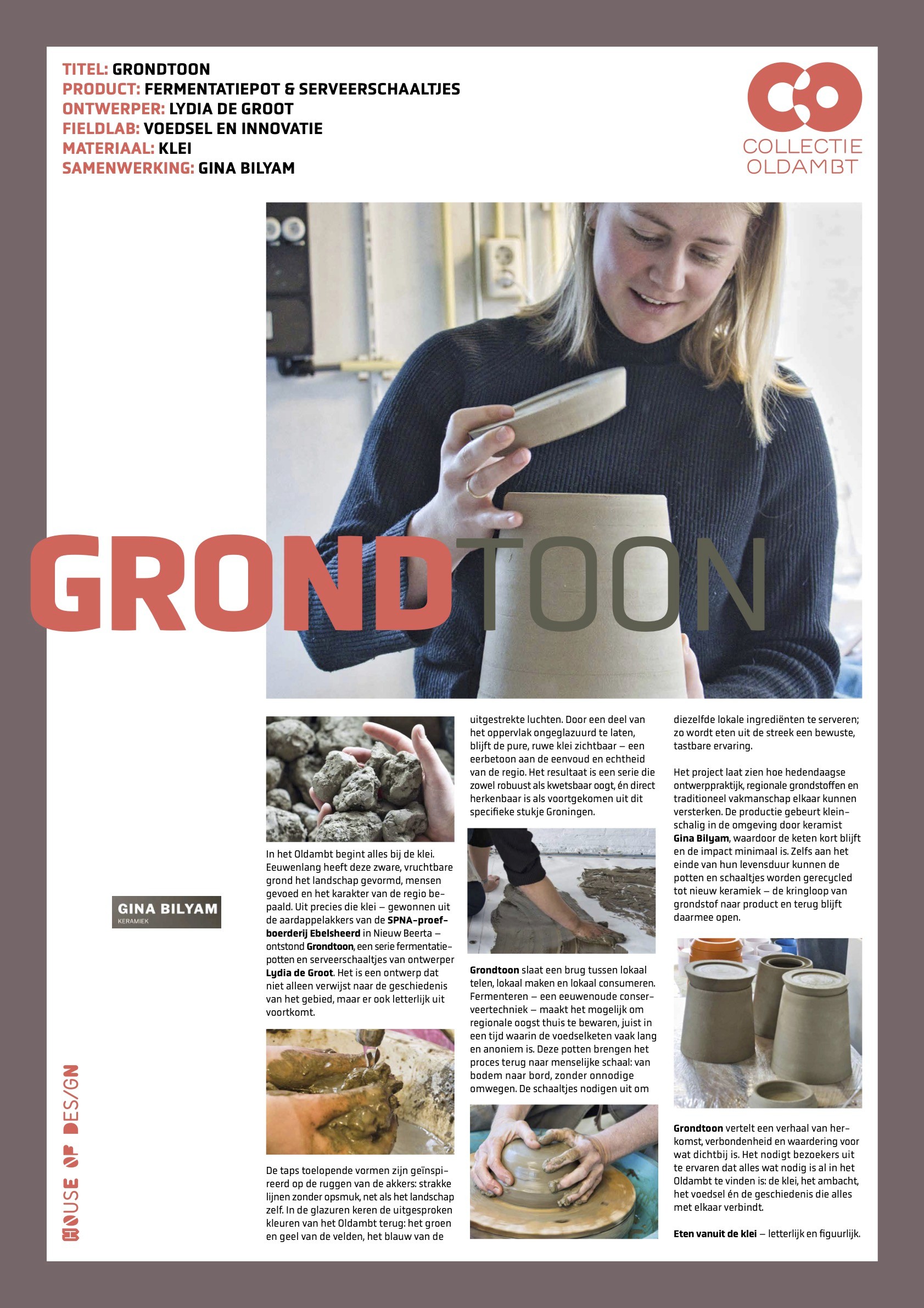 Grondtoon biedt een antwoord in de vorm van een fermentatiepot, vervaardigd uit lokale klei en geïnspireerd op het strakke, sobere landschap van het Oldambt. De pot maakt het mogelijk voedsel uit de eigen omgeving te fermenteren en te conserveren, zonder dat het een lange weg hoeft af te leggen.